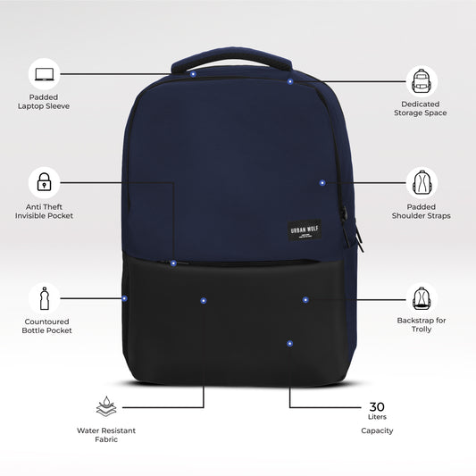 Urban Wolf Business Casual 30L Dual Compartment Laptop Backpack-HQ (BLUE)