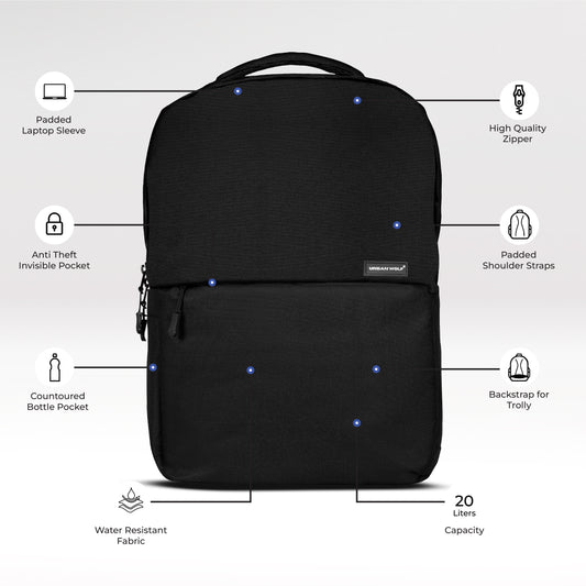 Urban Wolf Business Casual 20L Dual Compartment Laptop Backpack-(Black)