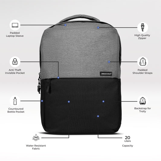 Urban Wolf Business Casual 20L Dual Compartment Laptop Backpack-(GREY)