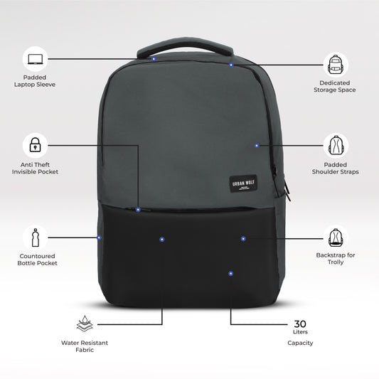 Urban Wolf Business Casual 30L Dual Compartment Laptop Backpack-HQ (GREY)