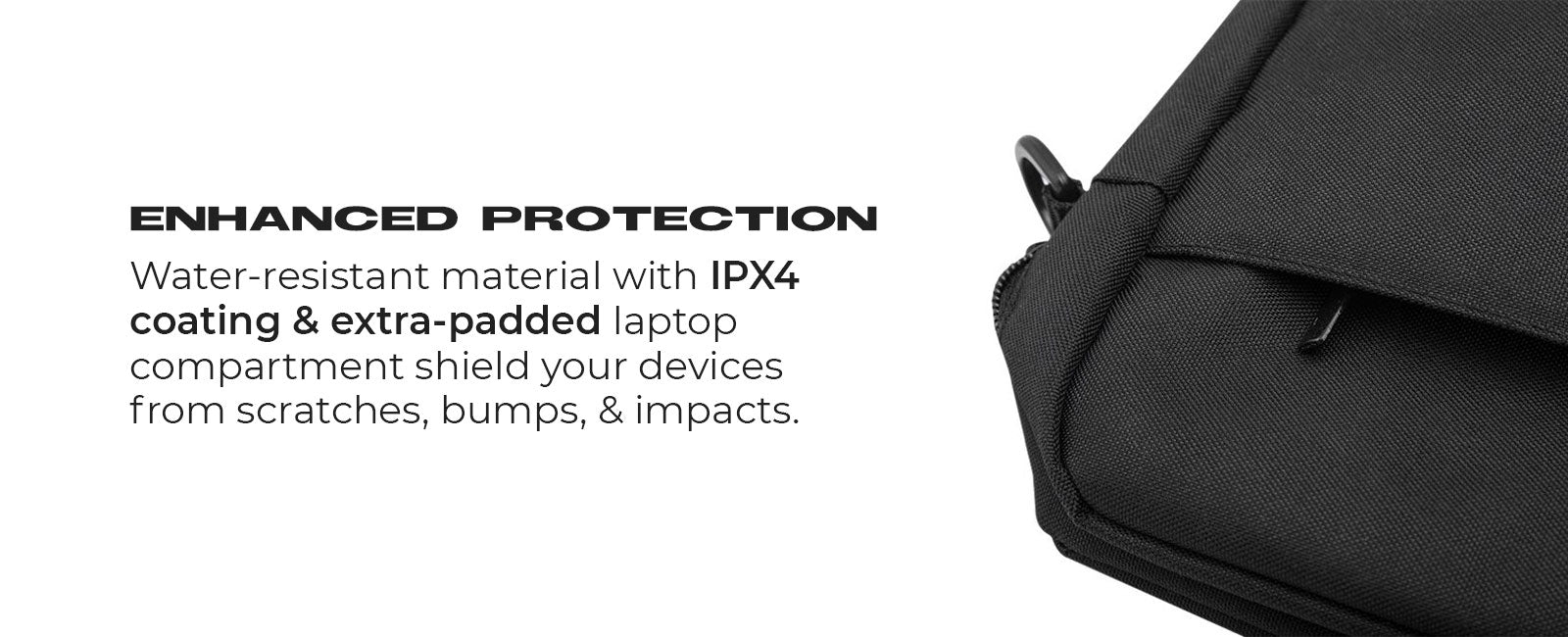 Enhanced Protection: Water-resistant material with IPX4 coating and extra-padded laptop compartment shield your devices from scratches, bumps, and impacts.