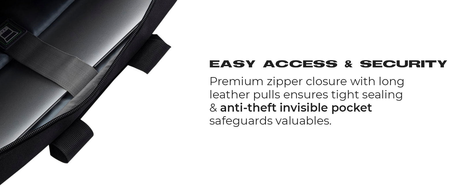 Easy Access & Security: Premium zipper closure with long leather pulls ensures tight sealing and anti-theft invisible pocket safeguards valuables.